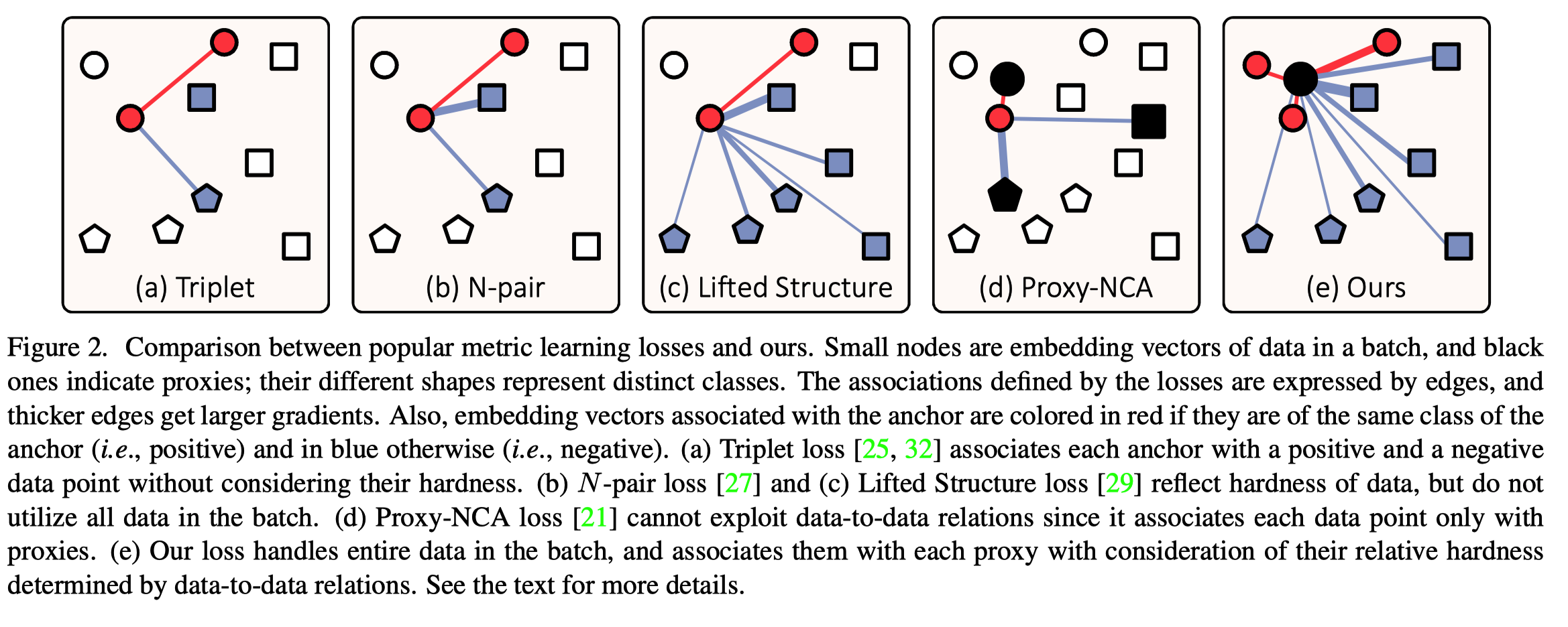 Proxy-NCA: 収束ははやいが、データ全体の情報は使えていない (a-cようなリッチなペア組み合わせ)