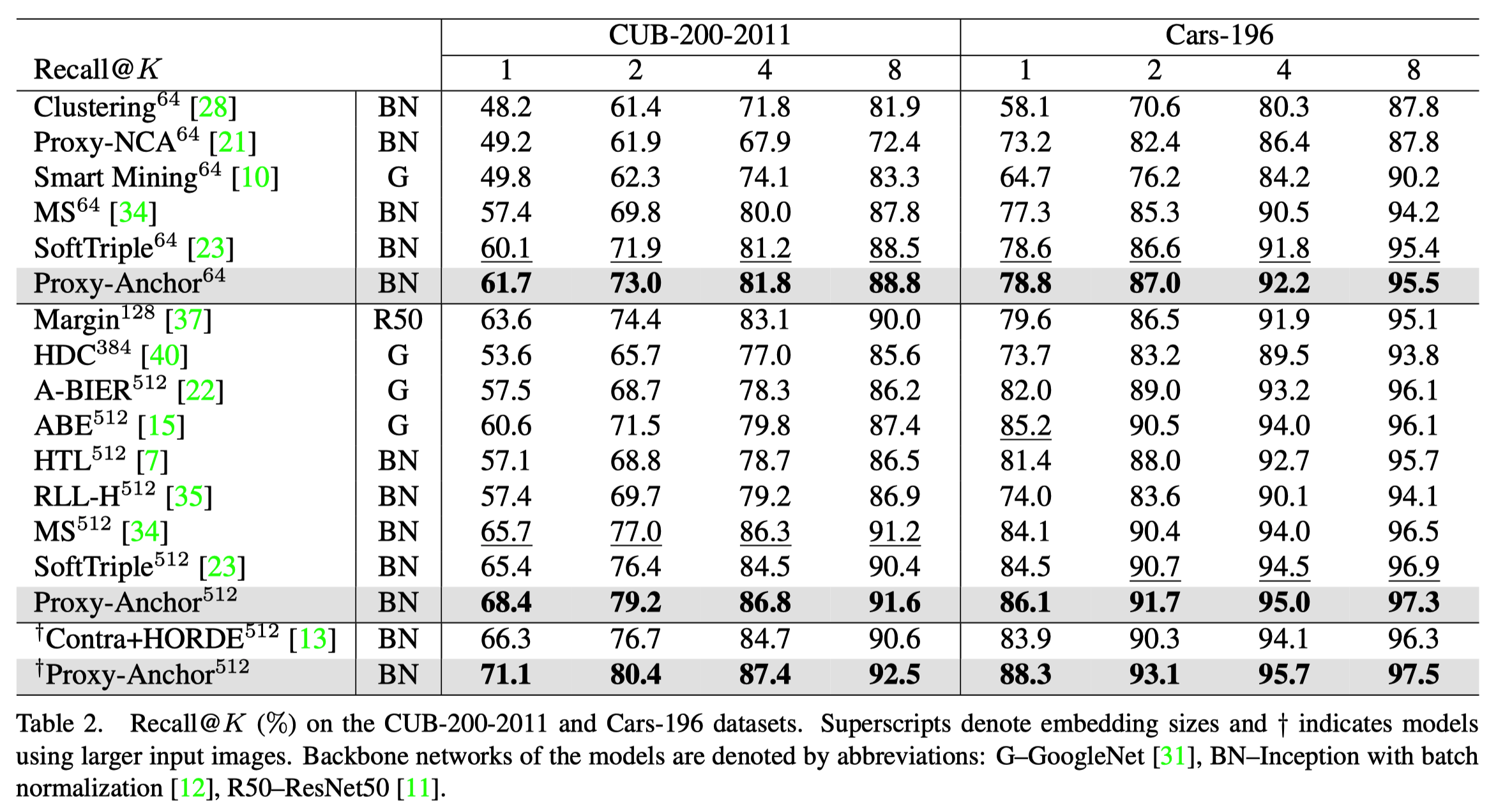 Proxy Anchor: Proxyも使うし、 a-cのようなサンプル間のペアも学習に使う