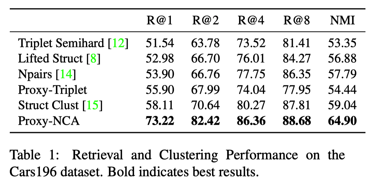 サンプル同士でpairを作るのではなく、サンプルの分散表現と各クラスの代表の分散表現(Proxy)でペアを作って、ロスを計算する