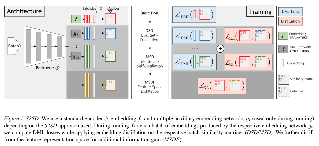 S2SDは、低次元埋め込み空間の学習と並行して、複数の高次元埋め込み空間を学習します。