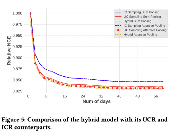 図3: 最初の1日目のIC-Sampling Sum PoolingのNCE(Normalzied Cross Entropy)を1を基準としたRelative NCEをプロット