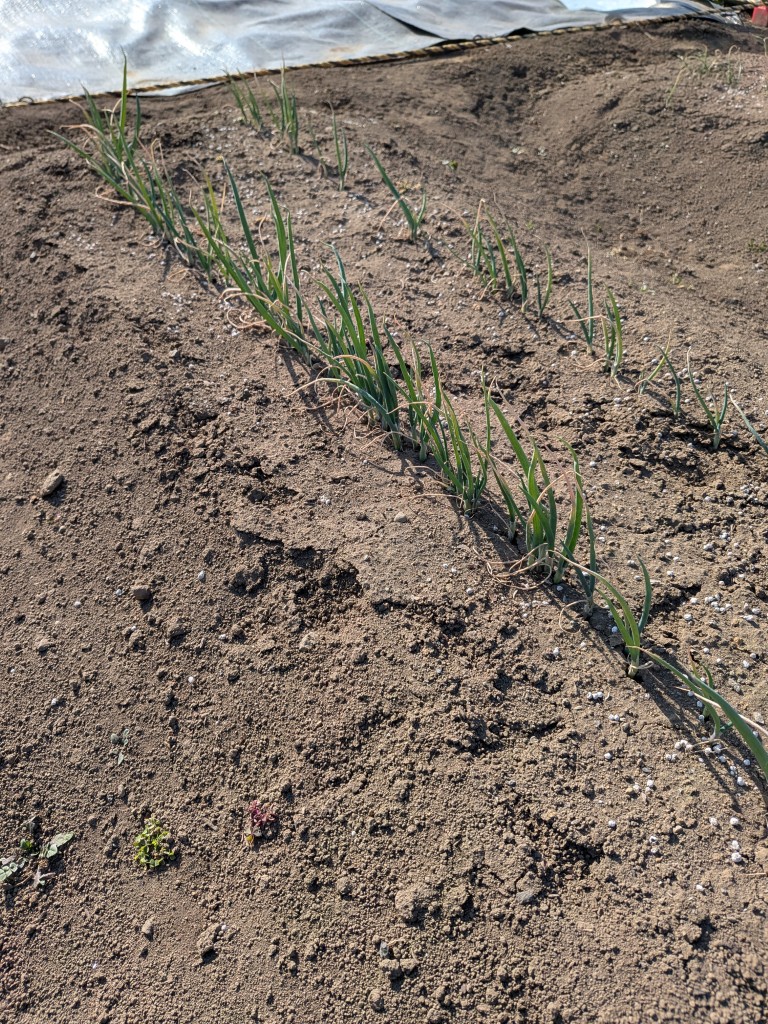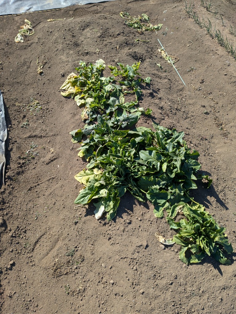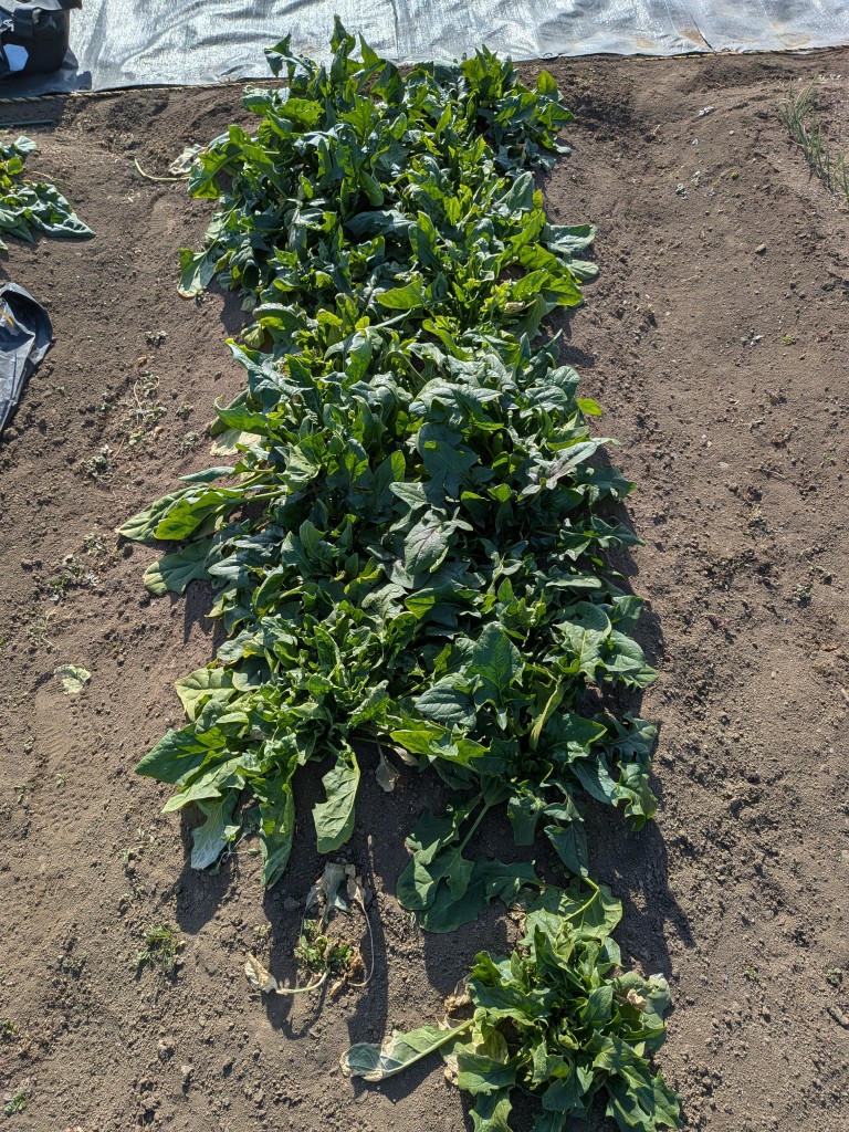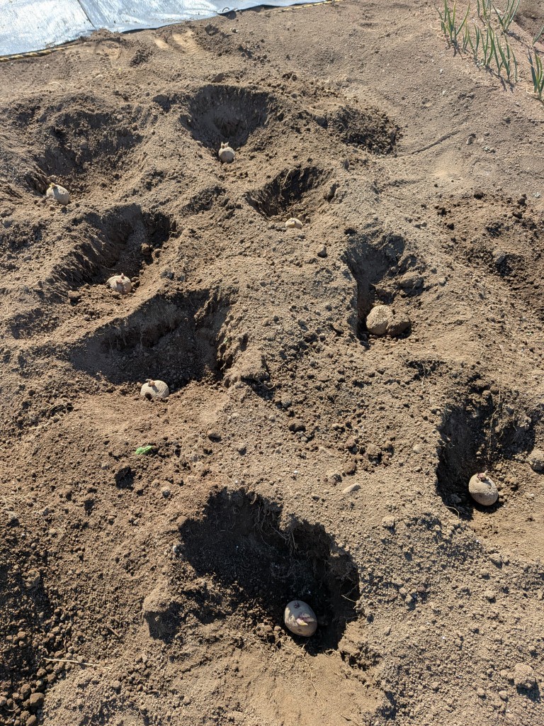ほうれん草の跡地にカインズで買ってきたじゃがいも(きたあかり)を植えた。