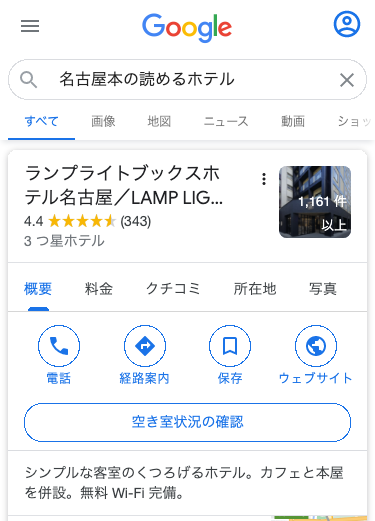 「名古屋本の読めるホテル」から「ランプライトブックスホテル名古屋」を当てるのは難しい